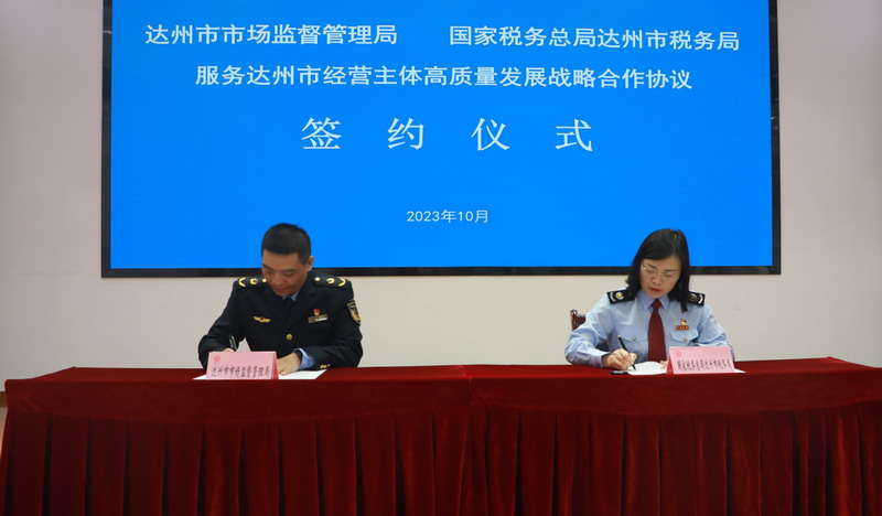 据了解,达州市税务局和达州市市场监督管理局前期在促进数据联通、服务联合、监管联动的基础上已建立良好合作关系。此次签订战略合作协议,标志着双方战略合作进入提档升级的新阶段,为达州经营主体高质量发展搭建纽带桥梁,提供优质服务。