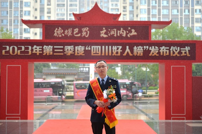 四川新闻网成都10月10日讯 崇德向善,见贤思齐。10月9日上午,2023年第三季度“四川好人”发布仪式在内江隆昌举行,国家税务总局南充市税务局第三稽查局陶智同志获评助人为乐类“四川好人”称号。组委会给出的颁奖词是:“十年来,在‘扶贫’路上奔波忙碌助农增收,帮困助学,如父亲般守护辍学儿童成才之路,他用凡人善举感动着当地群众”。
