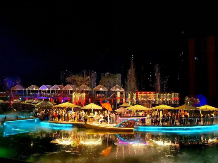 夜幕降临,武胜玛歌•白鹤湖火锅庄园迎来了一天中最热闹的时刻,喧嚣的食客和沸腾的火锅将夜晚装扮得红红火火,嘉陵江畔溢满麻辣鲜香。