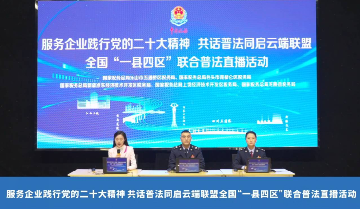 10月25日,国家税务总局乐山市五通桥区税务局联合内蒙包头市昆都仑区、新疆准东经济技术开发区、江西上饶经济技术开发区、云南龙陵县四地税务部门,共同举办了以“服务企业践行党的二十大精神 共话普法同启云端联盟”为主题的全国“一县四区”联合普法直播活动。此次直播历时45分钟,五地纳税人缴费人“跨越山海”共同在线进行了学习交流,线上访问量累计超4.5万人次,获得1.8万多次点赞。