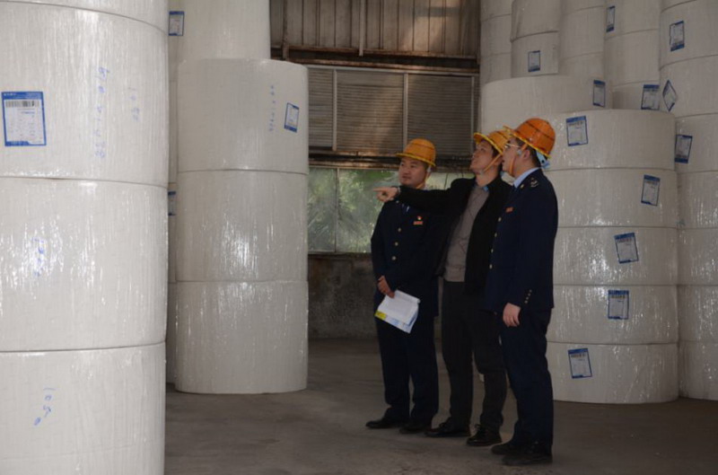 沐川县税务局“项目管家”到永丰浆纸生产车间了解重点项目推进情况(摄影:刘珊珊)
