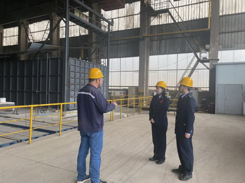 沙湾区税务局“重点企业服务专员”走访不锈钢预热烘干线项目(摄影:旦静萍)