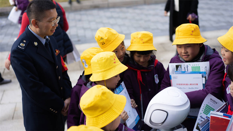 “你还知道哪些知识?”“个人所得税是什么?”“为什么我们要缴税?”在科博会的税费服务站内,来自火炬小学的学生们接二连三的向税务机器人“税宝”提问。今年是小明星“税宝”第二次参加科博会了,而满满科技的“税宝”身后,更少不了绵阳税务部门青年干部的那一抹亮丽的“税务蓝”。