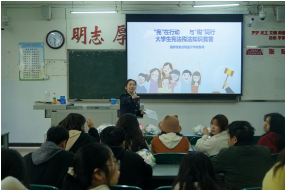 今年12月4日是第十个国家宪法日,12月1日至7日是全国“宪法宣传周”,为大力加强宪法学习宣传,引导大学生群体增强法治观念,国家税务总局遂宁市税务局普法团队走进四川职业技术学院,通过街头采访和课堂讲授的方式,面向大学生群体开展宪法知识有奖竞答活动、向大学生普及创业就业税收政策。