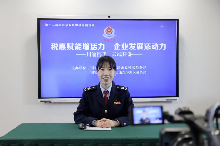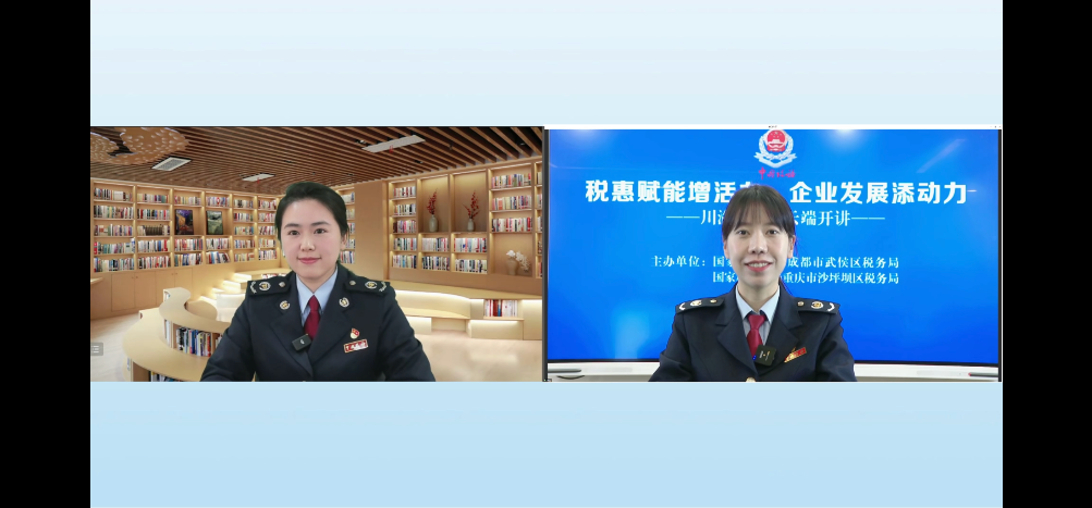 以第十二届减轻企业负担政策宣传周为契机,12月8日上午,一场由成都市武侯区税务局、重庆市沙坪坝市税务局联合开展的“税惠赋能增活力 企业发展添动力”跨省政策宣讲直播活动在线上启动。直播过程中,川渝两地税务部门专业讲师以“接力”形式线上授课,围绕增值税小规模纳税人减免和先进制造业增值税加计抵减两项专题,为两地企业带来了一场干货满满的税法“云课堂”。