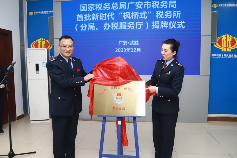 四川新闻网成都12月25日讯 12月25日,国家税务总局广安市税务局举行首批新时代“枫桥式”税务所揭牌仪式。市税务局党委委员、副局长李杨现场宣读命名文件并为全市首批新时代“枫桥式”税务所(分局、办税服务厅)代表——国家税务总局武胜县税务局第一税务分局揭牌。