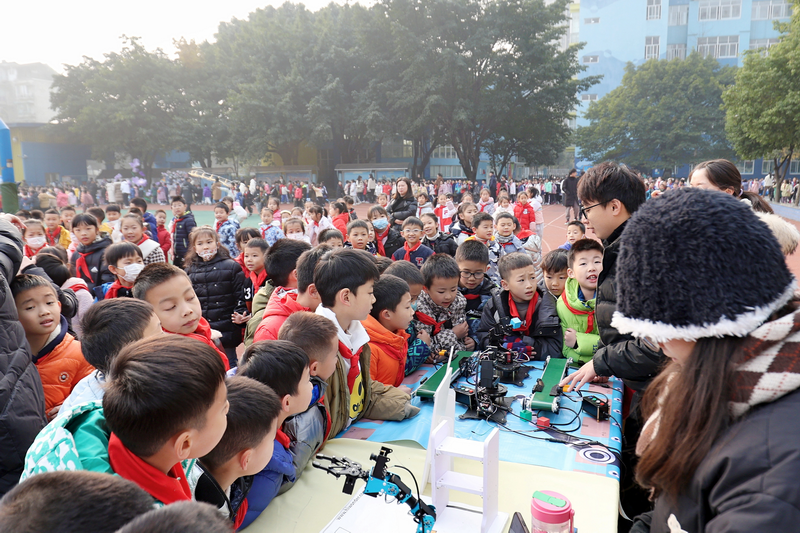 四川新闻网成都12月27日讯 玲琅满目的科创产品、新鲜好奇的科技体验……昨日,一场别开生面的校园科技节活动,在成都市泡桐树小学西区分校A区正式拉开帷幕,这也是《关于加强新时代成都市中小学科学教育工作的实施方案》出台之后,成都市中小学首次举办的科技节活动。