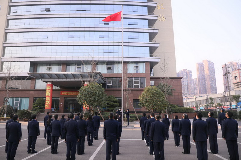 上午9点,升旗手、护旗手肩擎国旗,迈着矫健的步伐,护送国旗到达升旗台,在雄壮的国歌声中,鲜艳的五星红旗缓缓升起,自贡市各级税务机关干部,肃立仰望,精神饱满、斗志昂扬,誓将在新一年的税收工作新征程中,积极践行“为国聚财 为民收税”的使命。