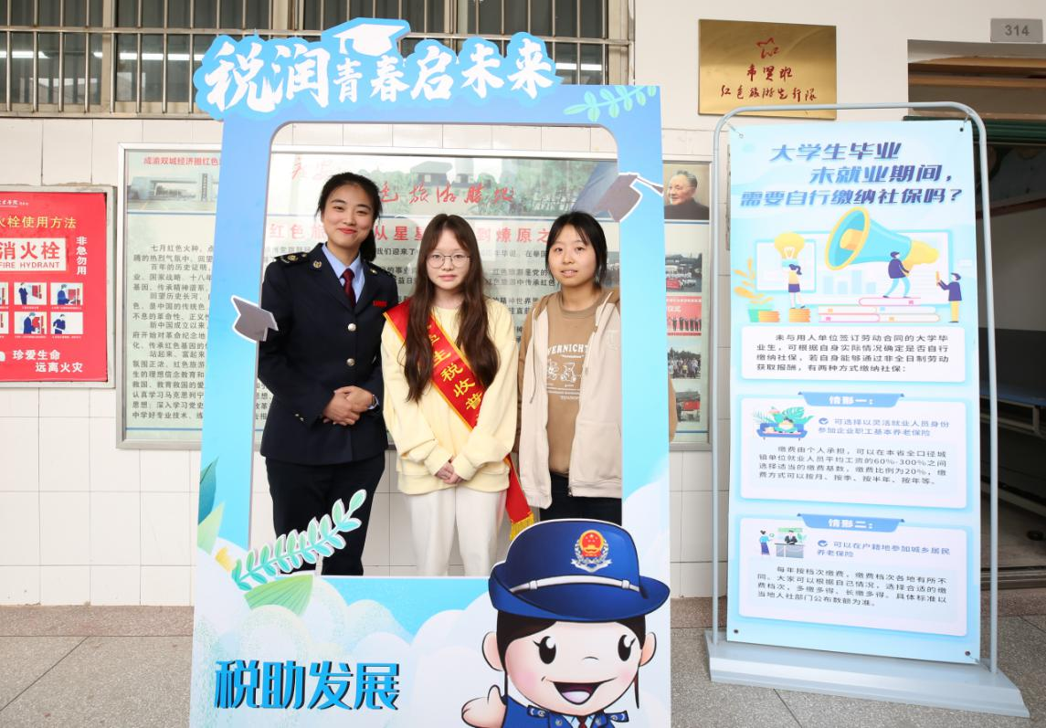 除政策宣讲外,税务干部还携手大学生税收普法志愿者在校园内邀请同学们进行税宣“打卡”,鼓励更多的大学生们学习税法、宣传税法。