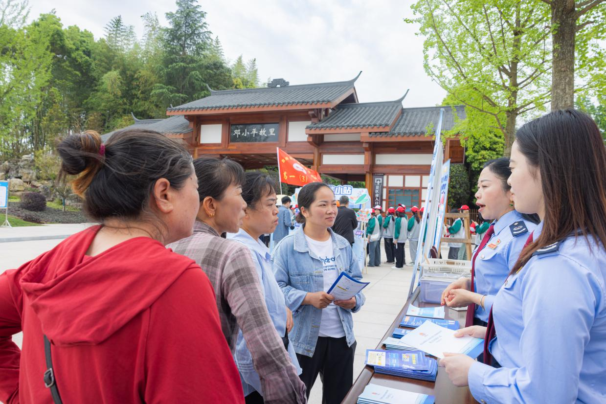 日前,在邓小平故里旅游区门口的“税收普法小站”,税务干部通过讲述小平同志的税收情节,引得游客纷纷驻足。