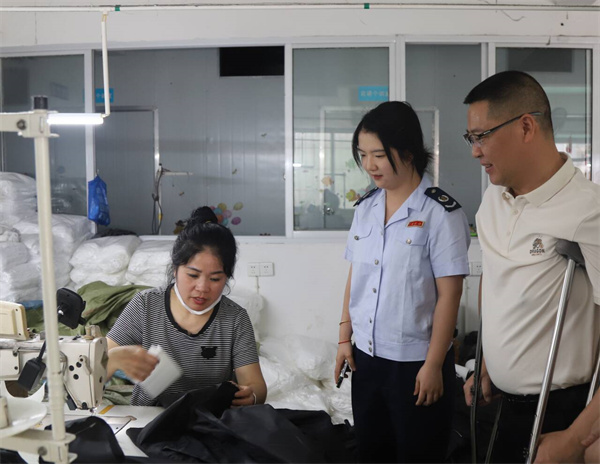 税务干部走访内江义博服装加工厂
