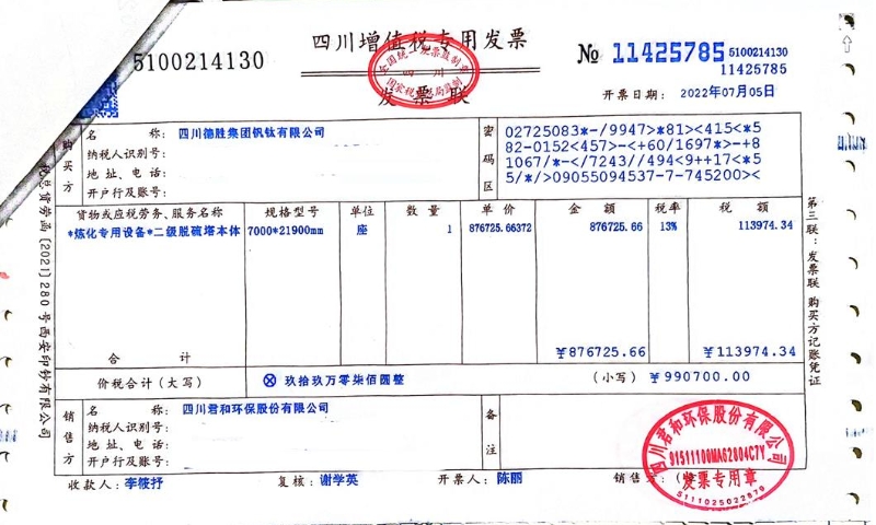 “为了响应国家低碳环保、节能降耗的号召,2022年我们又与中冶赛迪达成合作,新建1250立方米四号高炉产能置换节能减碳综合技改项目。之后与四川君和环保股份有限公司合作,签订球团超低排放改造协议,这张‘二级脱硫塔本体’发票不仅是一笔交易的凭证,更是德胜钒钛进行绿色转型的重要见证,标志着德胜踏上高质量发展的新阶段。”吴小平指着手里2022年与四川君和环保股份有限公司的一笔交易发票说,开始绿色转型的当年,公司收到了研发费用加计扣除、留抵退税等税费优惠超1000万元,税费优惠的“真金白银”让我们更加坚定的走在绿色发展的路上。