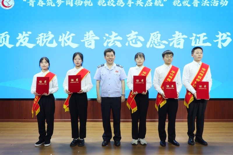 揭牌仪式后,经学校推荐,5名大学生成为凉山州第二批税收普法志愿者。
