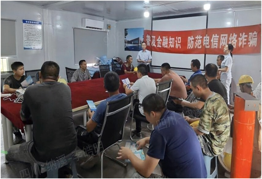 邮储银行泸州市纳溪区支行在添源建筑安装工程有限公司开展防范电信网络诈骗宣传活动现场