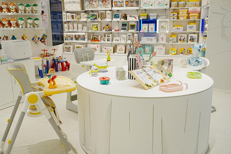 比如,门店内的一站式喂养台,结合实际使用场景,展示了从吸奶、储奶、喂奶、辅食等全育儿周期所需产品,包括吸奶器、储奶袋、温奶器、奶瓶、围兜、消毒柜、果蔬清洁剂、餐具、餐盘及餐椅等。通过场景化陈列,让顾客身临其境。同时,在场景化展示区附近会配备对应的商品货架,方便顾客就近拿取,有效缩短决策链路,带动联动消费。