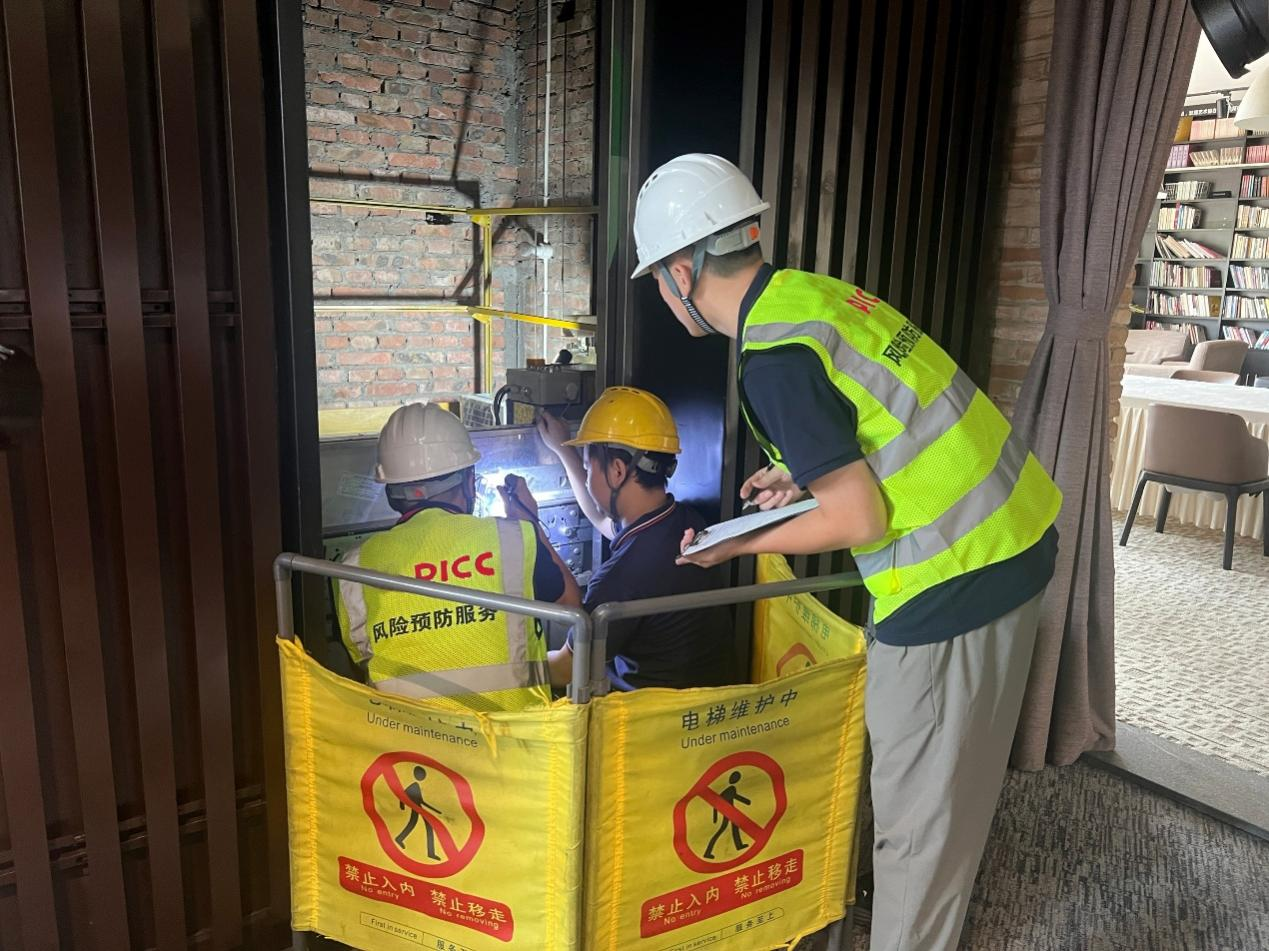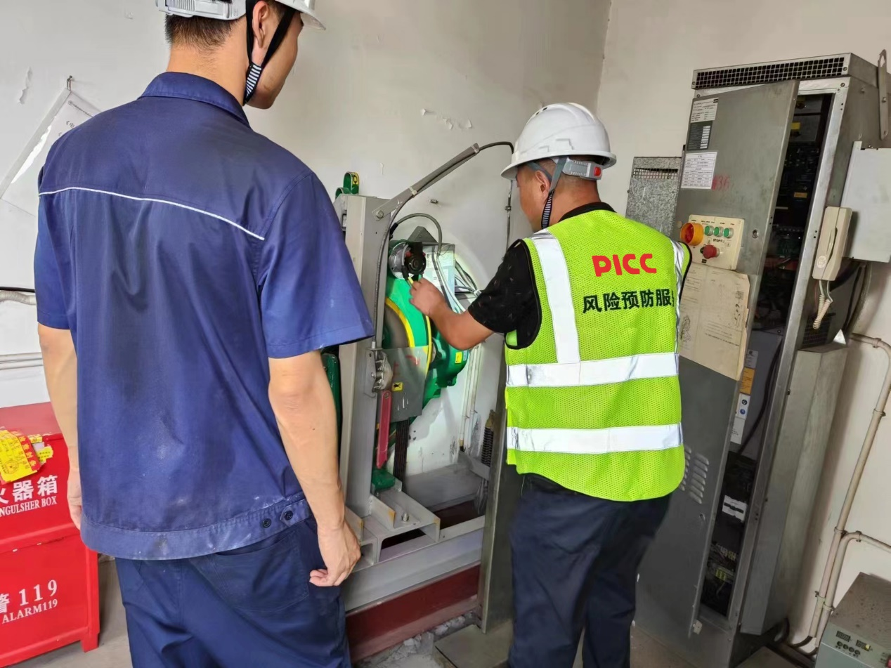 (图:人保财险工作人员正在检查电梯设备)